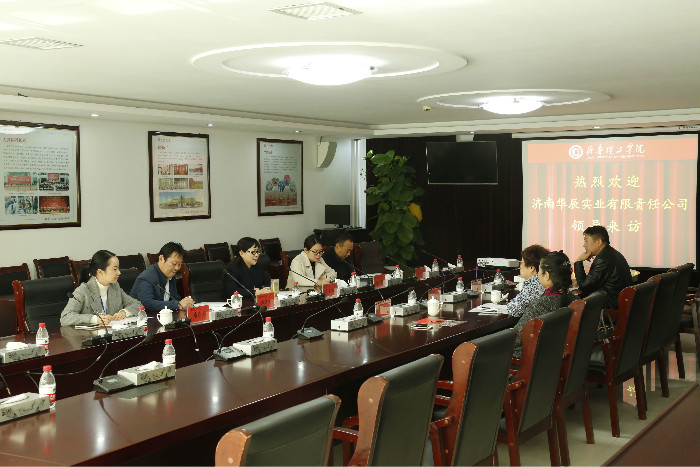 11月9日,济南华辰实业有限责任公司董事长韩喜玲等一行来校考察、洽谈产教融合项目。校长常翠鸣、校长(党委)办公室主任韩彦翠、资产与实验室管理处处长赵丽娇等共同参加座谈会。