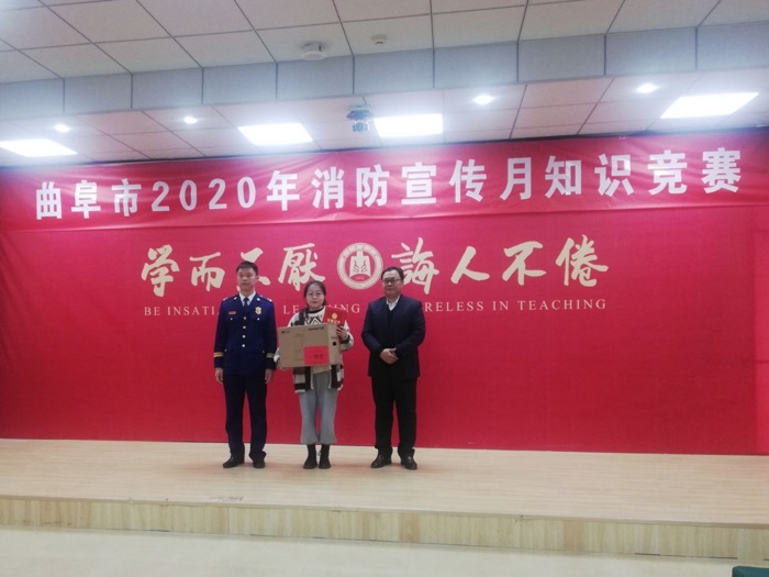 11月7日,由曲阜市消防救援大队、曲阜师范大学主办的曲阜市“关注消防,生命至上”消防宣传月知识竞赛活动圆满结束。我校2019级汉语言文学专业杨金月同学获个人赛第一名;2019级英语田露露、王淑婧,2019级汉语言杨金月同学获团体赛第二名。