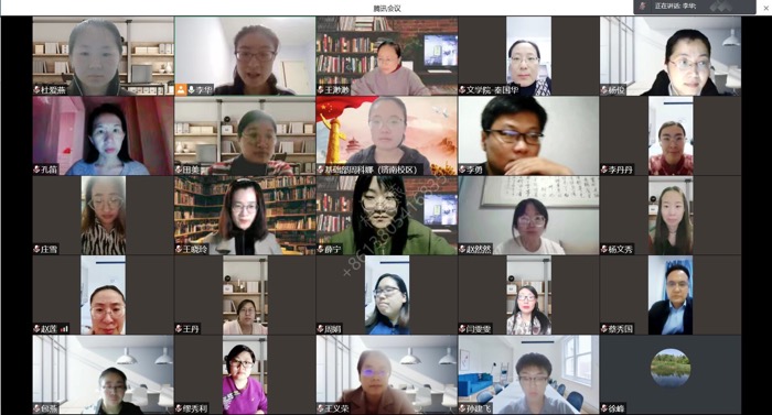 4月14日,曲阜校区文学院基础外语教研室与济南校区基础部大学英语教研室相聚云端,合力召开2022届本科毕业论文线上指导工作专题研讨会。文学院院长秦国华、基础部主任蔡秀国、实验中心主任孙彩虹、各教研室主任和全体指导教师参会,会议由基础外语教研室主任李华主持。