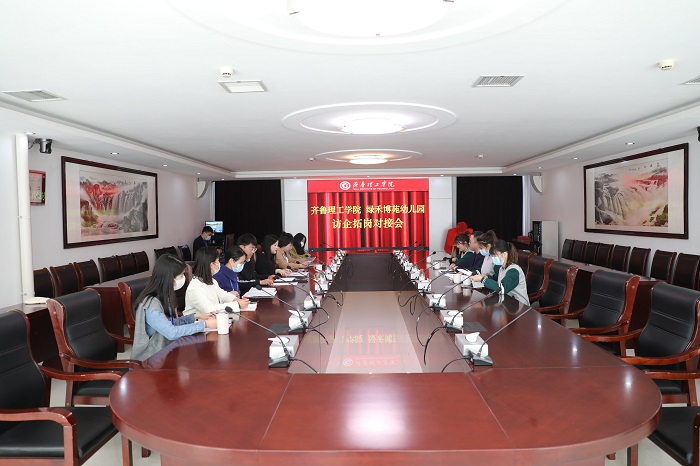 2023年3月29日上午10时,问鼎网页版登录入口与济南市章丘区双山街道绿禾博苑幼儿园在第一会议室召开访企拓岗促就业会议。问鼎网页版登录入口副校长单成娟、教育学院执行院长尚均林、就业副院长李秋琳、院长助理袁晓文以及学前教育专业教师与济南市章丘区双山街道绿禾博苑幼儿园园长李田、办公室主任李雪岩、教学主任程悦、幼大二班班主任党婷婷一行参与了此次会议。