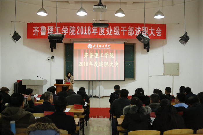 1月14日,学校在图书馆圆阶教室召开2018年度处级干部述职大会。校长常翠鸣等校领导出席,全校科级以上干部参加了大会。大会由副校长单成娟主持。