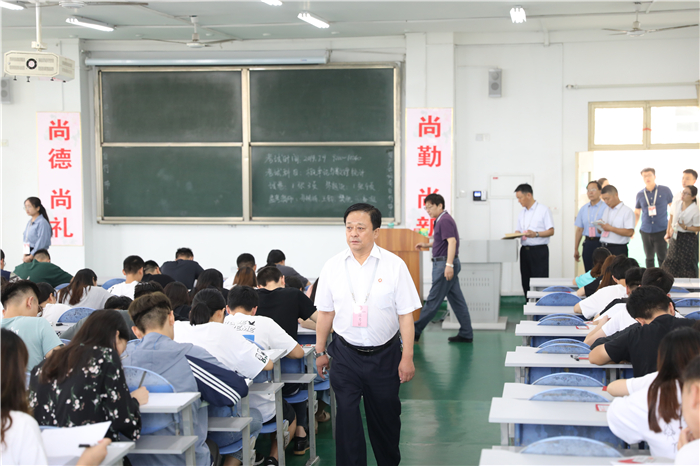 7月8日至12日,我校2018-2019学年第二学期期末考试经过5天紧张、有序的进行后,已圆满结束。两校区共安排考试课程161门、考试499场次,监考教师329人、监考1311人次,巡考410人次。期间校长常翠鸣带队深入每个考场巡视,检查考试组织管理、监考教师监考、学生考风考纪、后勤保障等情况。从考试工作巡查情况看,本次期末考试考场整体秩序井然,组织规范有序,监考人员基本都能认真履行监考职责,学生普遍能够遵守考试纪律,首次实现考生零作弊。