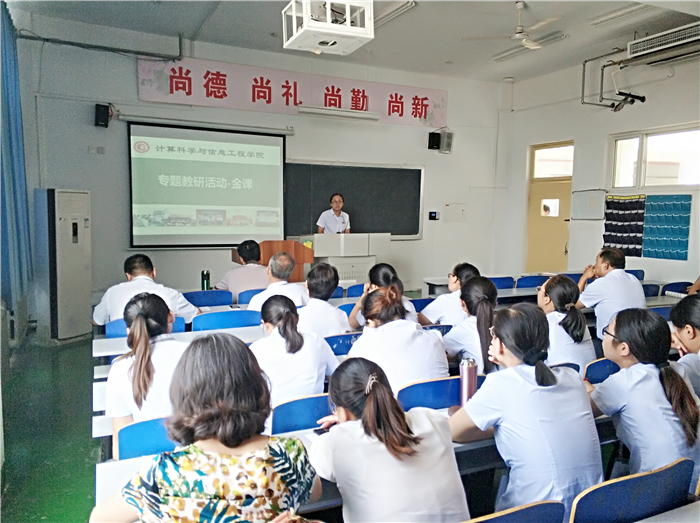 为贯彻教育部《关于狠抓新时代全国高等学校本科教育工作会议精神落实的通知》,落实学校教学工作会议精神,努力打造“四金”:金专、金课、金师、金生,进行课堂革命,提升教学质量。计信学院紧随学校步伐,借一流专业建设契机,将“金课”建设作为本学期一项重点工作来抓,启动“金课”建设系列活动。9月4日下午,在A409教室开展了本学期“金课”建设第一次活动。总督学魏希启、质量管理办公室专家单伟参加活动并提出指导意见。