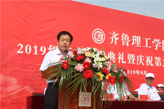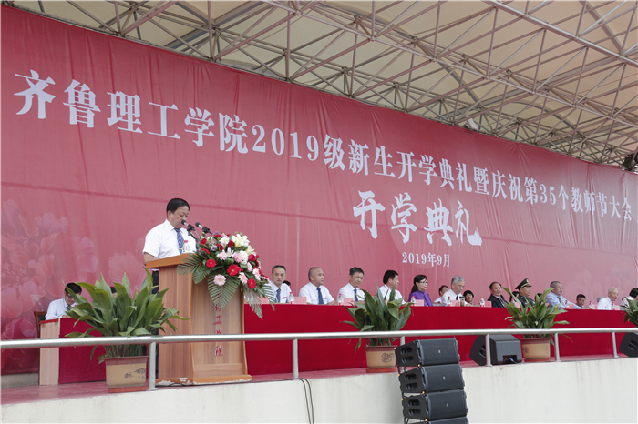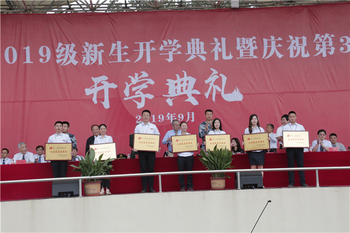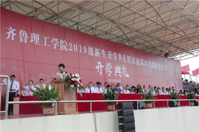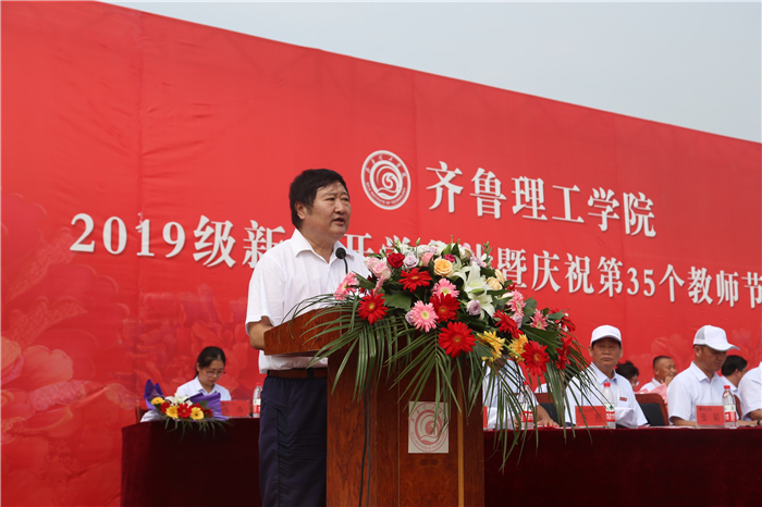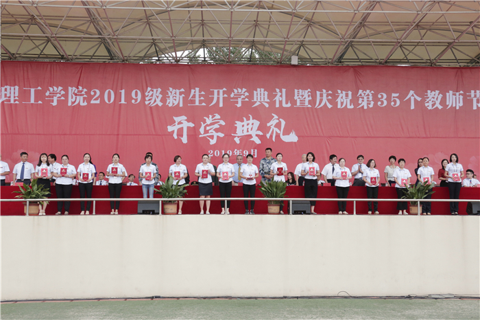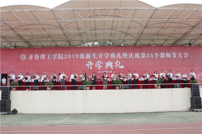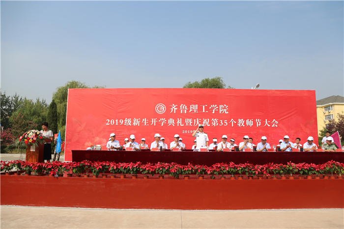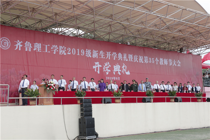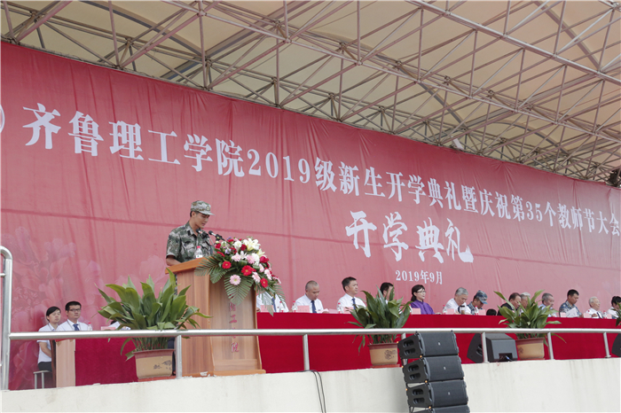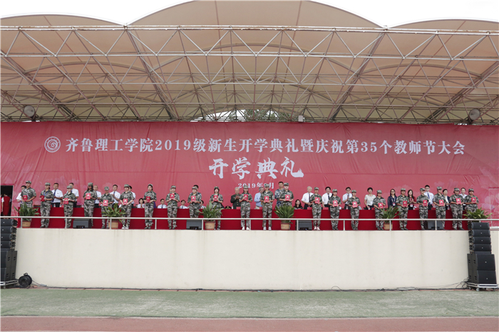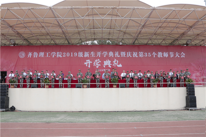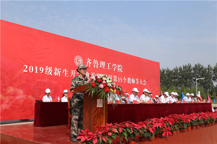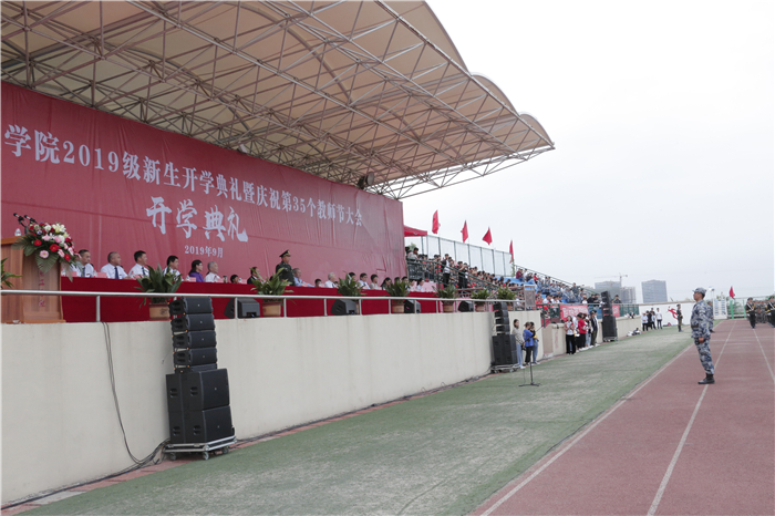 在庆祝新中国成立70周年的欢庆时刻,我校2019级新生开学典礼暨庆祝第35个教师节大会在两校区隆重举行。我校高级顾问王长根将军,我校老领导奚正楷教授、王琰璧教授、陈连璧教授、朱摩西教授,军训团领导,党委书记向来生、校长常翠鸣等校领导,二级教学单位、部门负责人,教师代表出席典礼并在主席台就座。