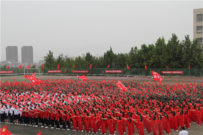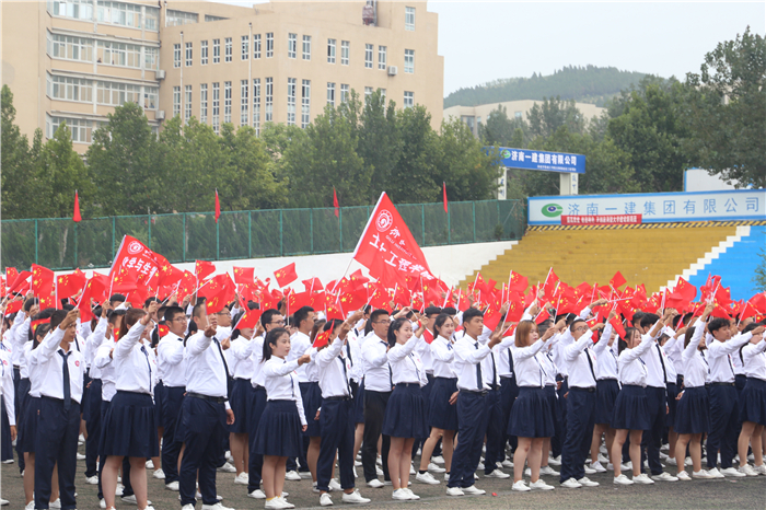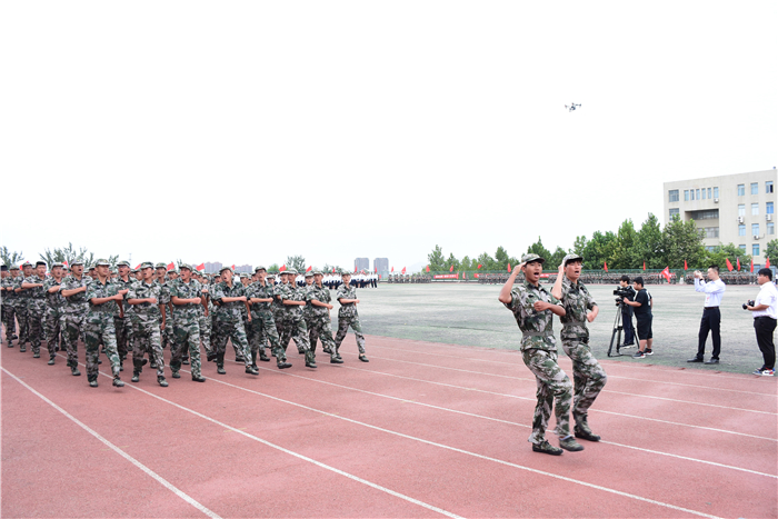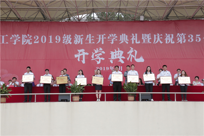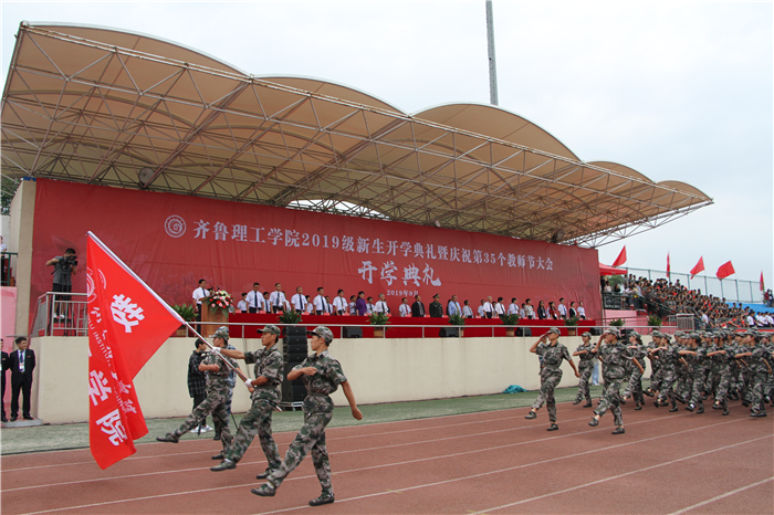 典礼首先举行了阅兵式,2019级新生代表、教师代表先后发言,对新生军政训练先进集体和个人进行了表彰,全体新生在国旗下向祖国庄严宣誓。典礼上同时表彰了省级比赛获奖教师、“最美教师”“师德标兵”,全体教师面向国旗郑重承诺,不忘初心、牢记使命,为培养高素质应用型人才不懈奋斗。