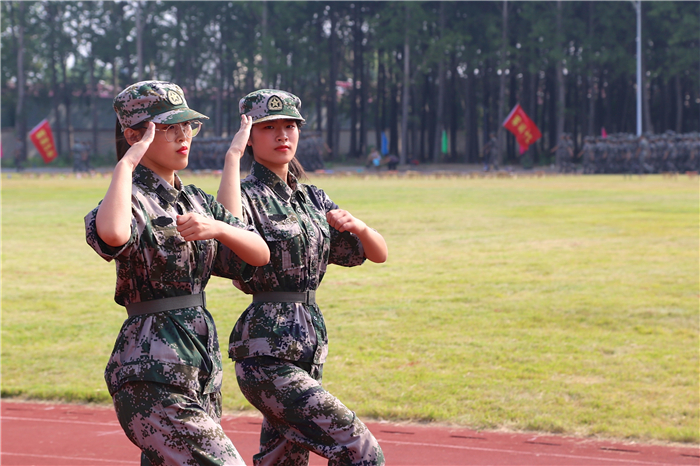 获得军政训练优秀学员的2019级新生代表上台领奖