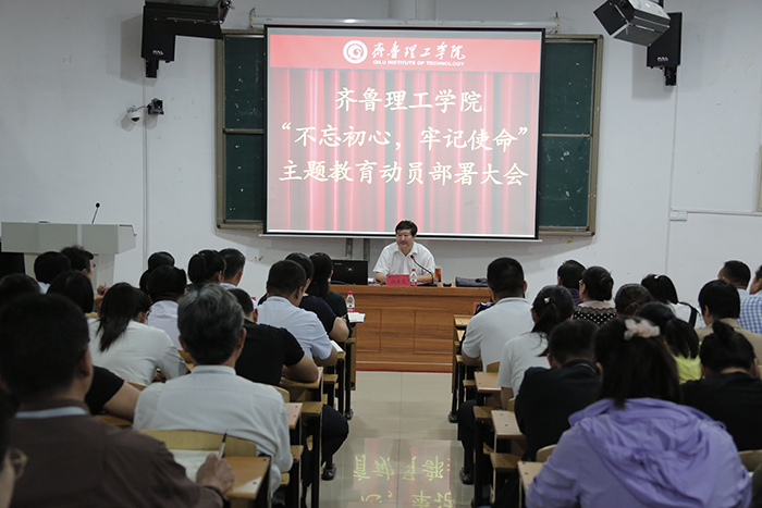 党委书记向来生在会上作动员讲话。向来生指出,全校党员干部要深入学习贯彻习近平总书记在“不忘初心、牢记使命”主题教育工作会议上的重要讲话精神,认真落实党中央、省委关于“不忘初心、牢记使命”主题教育的部署以及省委教育工委、省教育厅“不忘初心、牢记使命”主题教育动员部署会的要求。他强调,全校党员干部要深刻认识开展主题教育的重大意义,准确主题教育目标要求和根本任务,切实增强思想自觉、行动自觉,用实际行动为教育事业做贡献,为我校建设发展发挥先锋模范作用。他还强调,各个支部、全体党员,思想要高度重视,按照部署要求,扎扎实实地抓好落实,真学真做真改真干,切实让这次主题教育取得实效。各支部书记、各部门领导要切实履行职责,带头学习、组织学习、督促学习。要建立常态化督导检查机制,把督导检查贯穿于主题教育实践活动始终。通过开展主题教育实践活动,进一步提升单位的组织力、凝聚力、向心力,更好地推动教育教学工作,更好地推进学校全面建设发展。