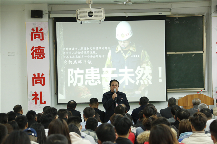 为提高校内从业人员的消防安全防范意识和应急处理能力,11月20日,我校组织开展了消防安全知识讲座及演练活动。副校长陈月吉、赵云生,校长助理韩衍顺,各学院分管学生副院长,全体辅导员,以及保卫处、餐饮服务中心、公寓管理人员,学生干部共280余人参加了培训。培训由大学生服务中心主任王建国主持。