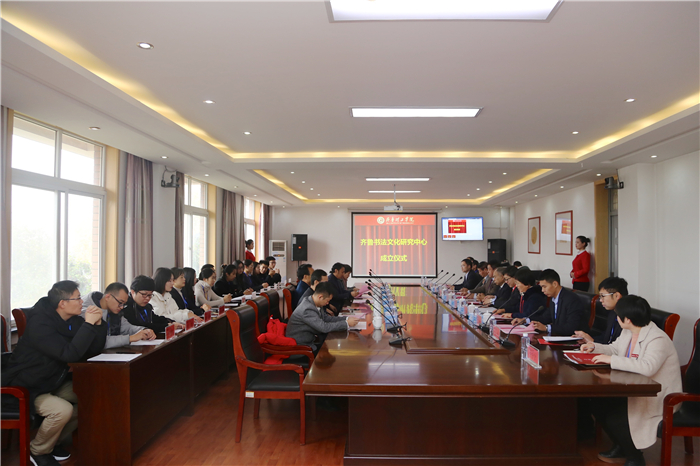 成立会上,曲阜师范大学原校长、博士生导师、学校齐鲁文化研究院院长傅永聚教授讲话。指出,书法是优秀传统文化的重要组成部分,更是齐鲁文化的重要组成部分,历经千年依然焕发着璀璨的光彩。加强齐鲁书法文化研究,对于弘扬齐鲁书法文化,推动书法艺术学科发展,一定会起到重要的推动作用。学校齐鲁文化研究院将全力支持中心的工作,协同推进齐鲁书法文化的创新和发展。