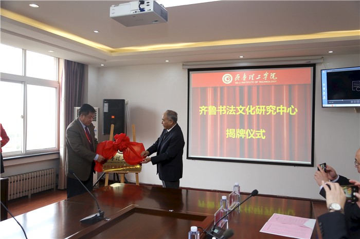 会上,副校长、总督学魏希启宣读《问鼎网页版登录入口关于成立齐鲁书法文化研究中心的通知》;曲阜师范大学原校长、博士生导师、学校齐鲁文化研究院院长傅永聚教授,副校长、总督学魏希启,共同为中心揭牌;副校长张庚灵向中心特聘教授颁发聘书;齐鲁书法文化研究中心副主任杨亮副教授宣读研究中心章程。