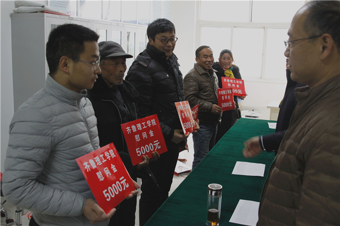 本次活动采取集中组队、分散走访的方式。分别在淄川、费县、临沭、曹县、单县等地教育局召开现场会,现场会上,学校领导和老师详细宣传和解读了国家和学校的资助政策,传达了学校对家庭经济困难学生的深切挂念和关怀帮助,并为家庭经济困难的77位学生每人发放了5000元的慰问金,鼓励他们树立信心,正确面对和努力克服困难,保持良好的心态,努力学习。
