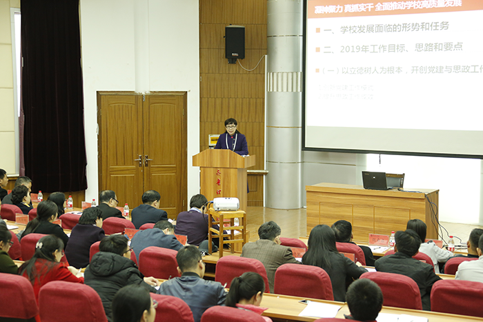 二、学校隆重召开2019年教学工作会议,校长常翠鸣作“凝神聚力 真抓实干 全面推动学校高质量发展”的主题报告。