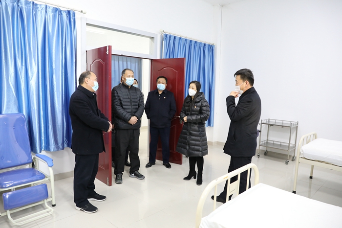 来宾一行实地参观了我校的隔离区,详细了解了隔离区的建设情况、防护设施配备、防护物资储备等。副校长单成娟系统介绍了我校疫情防控工作的措施和经验,以及各项开学前的准备工作。