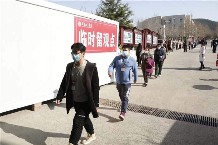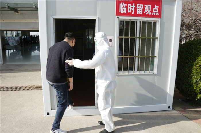 为确保学生复课后的疫情防控万无一失,保证开学后良好的教学秩序。3月18日,学校按照“细之又细、实之又实、严之又严、慎之又慎”的原则组织开展了复课疫情防控工作应急演练。学校疫情防控工作领导小组成员、疫情防控专家组成员、学生管理人员、后勤管理人员、安保人员等参加演练。