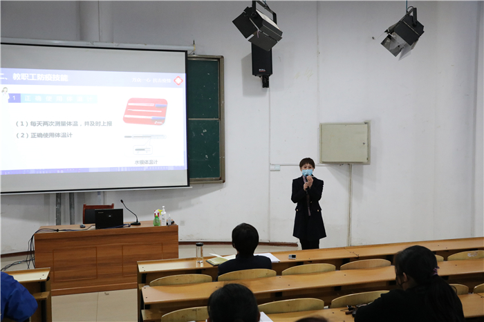 为切实做好学校疫情防控工作,提高教职员工的疫情防护技能和水平,为开学复课做好准备,3月30日,我校组织近期返校的教职员工开展新冠肺炎疫情防护知识和技能培训。培训由技术防控专家组组长、副校长徐晓霞主持。