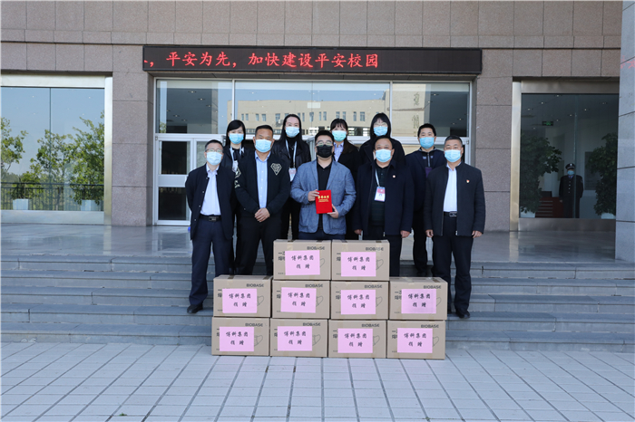 4月23日,博科控股集团向学校捐赠了一万只一次性口罩,助力学校做好复学准备。副校长陈月吉、校长助理韩衍顺以及校办、学团工作部、宣传部、机电工程学院负责人参加捐赠仪式。