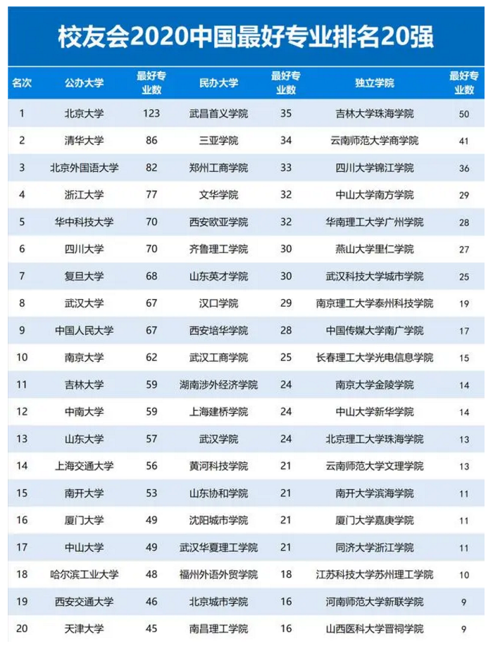 近日,艾瑞深校友会网(Cuaa.Net)撰写的《2020中国大学评价研究报告—高考志愿填报指南》一书由科学出版社出版发行,报告最新发布2020中国一流专业排名和2020中国最好专业排名等榜单。报告显示,全国936所高校的8055个本科专业荣膺2020年中国最好专业美誉。在这份榜单中,问鼎网页版登录入口以30个本科“最好专业数”,位列全国民办高校第6名。