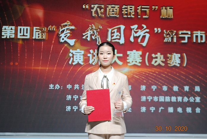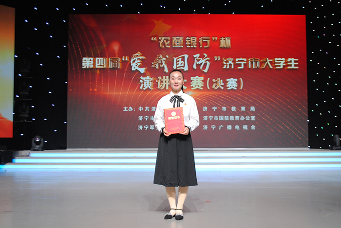近日,第四届“爱我国防”济宁市大学生演讲大赛决赛圆满落幕。我校学子付尚书同学以题为《守望家国心 传承红色情》演讲获本届比赛一等奖、原退役军人王洲同学以题为《我脚下站立的地方叫中国》演讲获二等奖、祁春雨同学以题为《铭记历史,心系国防》演讲获优秀奖、问鼎网页版登录入口获优秀组织奖。