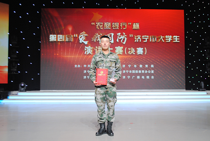 作为一项全国性国防教育活动,本次大赛自8月份开赛以来,7所驻济高校300多名大学生参加了比赛。经过初赛、预赛的层层选拔,11名优秀选手进入决赛现场。最终,我校付尚书、王洲同学用真情实感打动了现场每一位观众,大放异彩、拔得头筹,将代表济宁赛区参加山东省“爱我国防”演讲比赛。