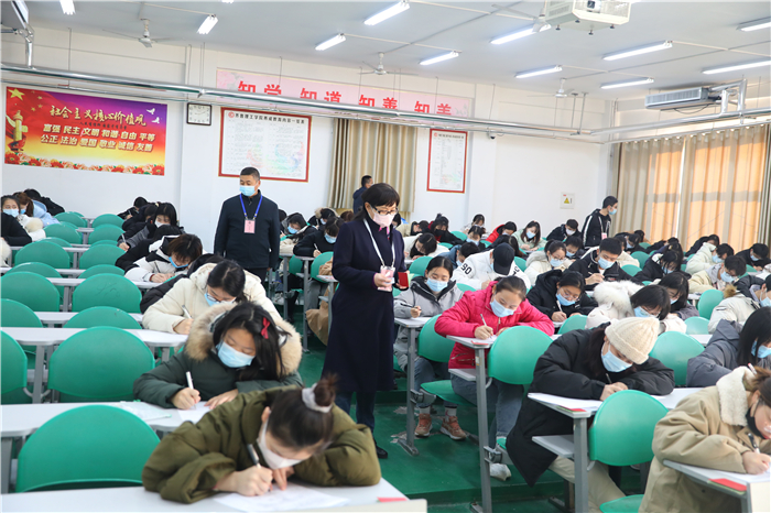 学校2020-2021学年第一学期期末考试12月30日圆满结束。考试期间,校长常翠鸣带领校领导深入每个考场巡视,检查考场疫情防控、考试组织管理、监考教师监考、学生考风考纪、后勤保障等情况,深入一线指导和统筹协调考试工作。