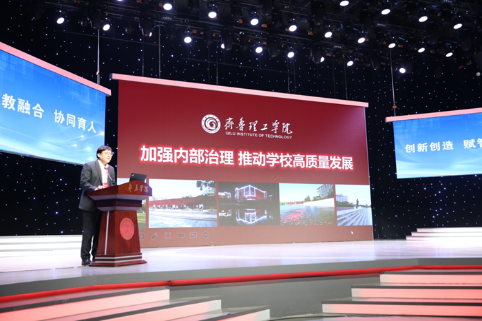 论坛上,学校副校长张庚灵做了题为“加强内部治理,推动学校高质量发展”的报告,介绍了学校近年来发展的突出成就,重点围绕应用型高校建设从治理体制、产教融合、教师队伍、教学资源、人才培养、学生发展、学科科研、文化育人、国际交流与合作、办学特色等十个方面谈了学校的经验做法、思路和取得的成效,突出介绍了学校在“3S”人才培养模式、齐鲁文化育人、养成教育等方面的特色与亮点。