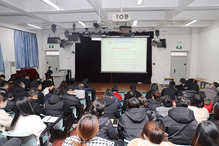 张庚灵副校长在主持中表示,徐书记的报告站位高、资料翔实、条理清晰、分析透彻,让我们更全面、深入的把握了十九届六中全会的精神,希望大家深刻领会徐书记的报告精髓,按照学校党委的统一部署和要求,不断把学习、领会、落实十九届六中全会的精神的推向新高潮。