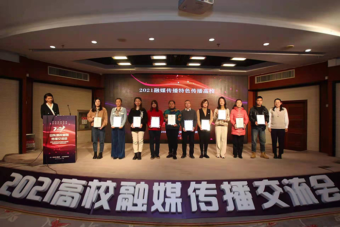 12月18日上午,齐鲁晚报•齐鲁壹点2021山东高校融媒传播交流会暨第三届“寻找山东最美大学校园”微视频/摄影大赛颁奖典礼在济南举行,我校荣获“2021融媒传播-特色传播高校”。