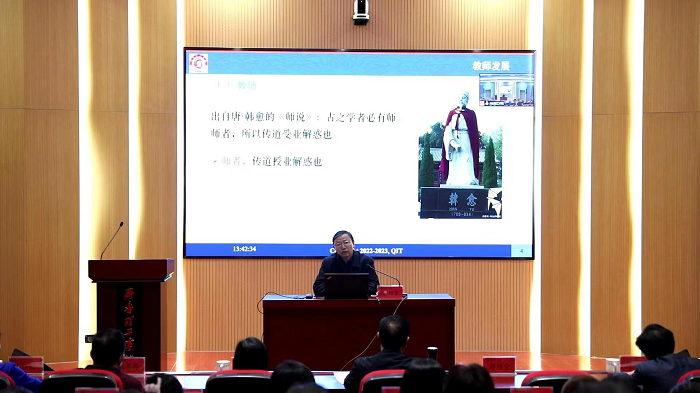 开班首场讲座由科研处处长郭培全教授主讲,他以“科研能力提升与教师发展”为主题,从四个方面进行了阐述,为青年教师今后如何开展科研、走好教师职业发展之路指出了努力方向。