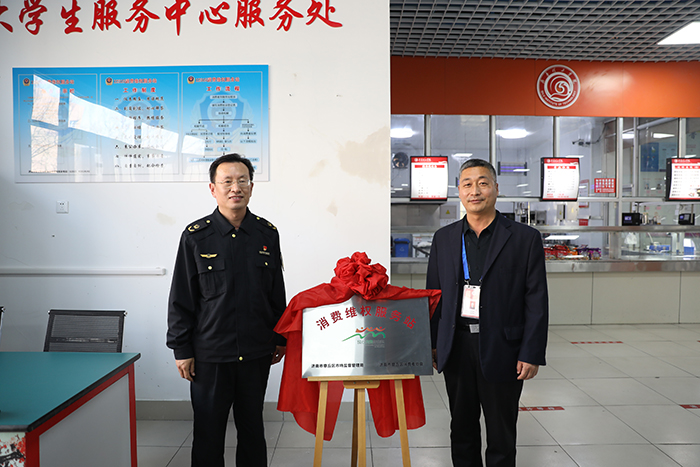 3月9日,我校举行“消费维权服务站”揭牌仪式,章丘区市场监督管理局副局长柴俊峰,学校副校长赵庆勇参加仪式并为服务站揭牌。