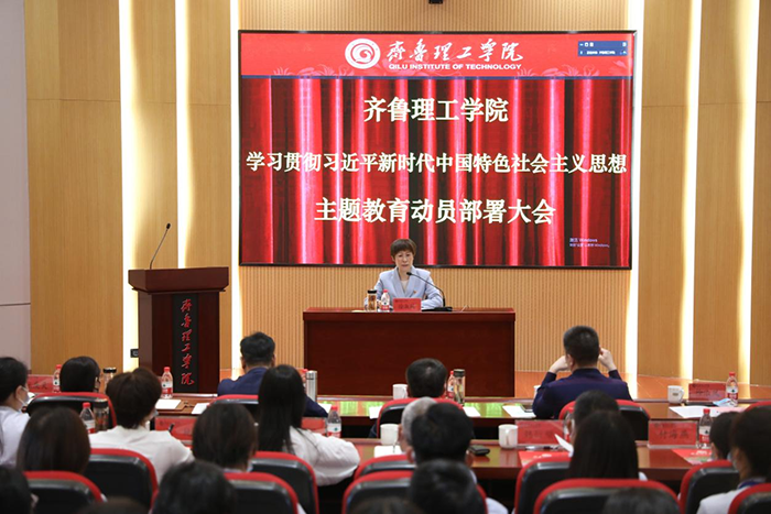 徐淑凤作动员讲话,从深刻认识开展主题教育的重大意义、全面准确把握主题教育的目标要求、强化组织领导三个方面,对开展主题教育作了全面动员部署。要求全校上下以本次主题教育为契机,更加紧密地团结在以习近平同志为核心的党中央周围,坚持以习近平新时代中国特色社会主义思想为指导,加强党的创新理论武装,不断提高理论水平和能力素养,以高水平应用型大学建设的新成效,为社会主义现代化国家和新时代社会主义现代化强省建设、为全面推进中华民族伟大复兴贡献齐鲁理工力量!
