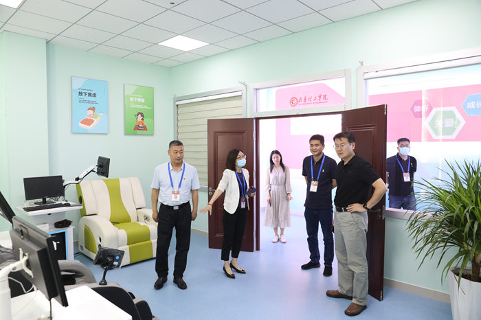 座谈会上,赵庆勇致欢迎词。心理健康教育中心介绍了我校心理健康教育工作的特色和成效。王超对我校心理健康教育工作给予了高度评价。随后,双方就心理健康教育师资、心理健康教育活动、心理健康教育课程体系、心理危机预防及干预等相关问题进行了深入交流与探讨。会后,王超一行参观了心理健康教育中心各功能室。