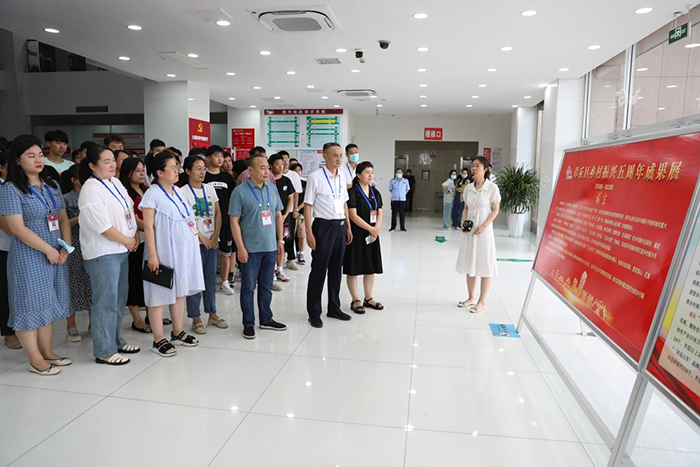 6月26日,“章丘区乡村振兴五周年成果展”巡回展示活动在我校举行,师生党员代表进行了集中观看。
