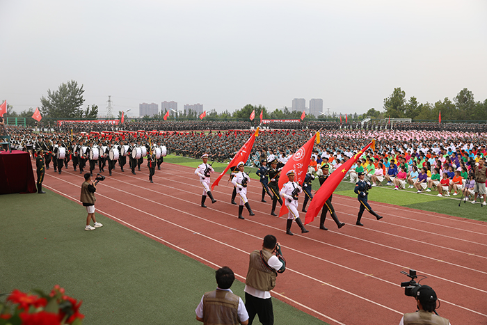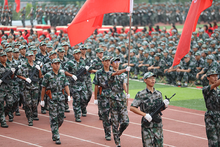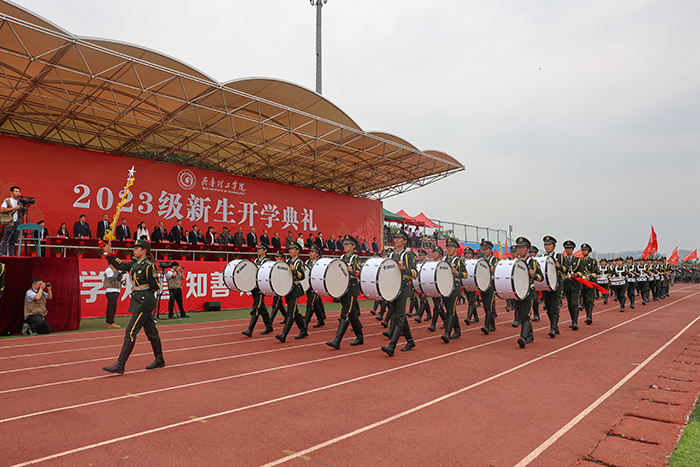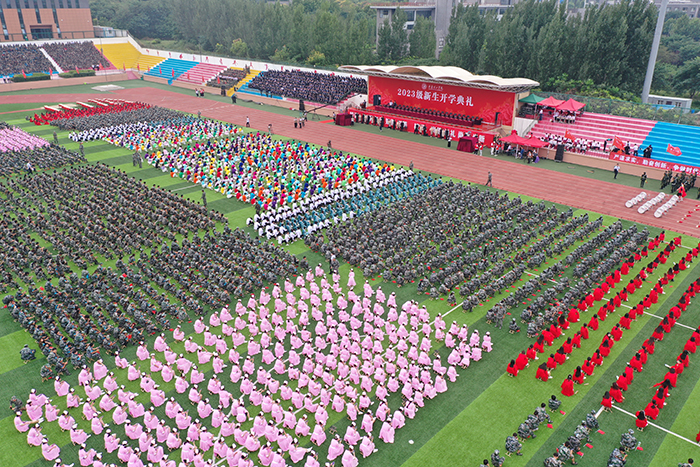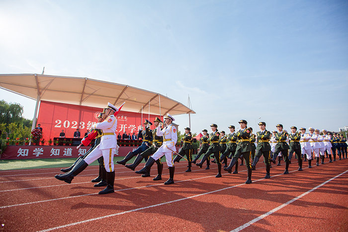 典礼前,首先进行了2023级新生军政训练阅兵仪式,受阅方队迈着整齐的步伐,依次从主席台前走过,他们精神饱满、斗志昂扬,飒爽的英姿展现了2023级学子蓬勃的朝气。
