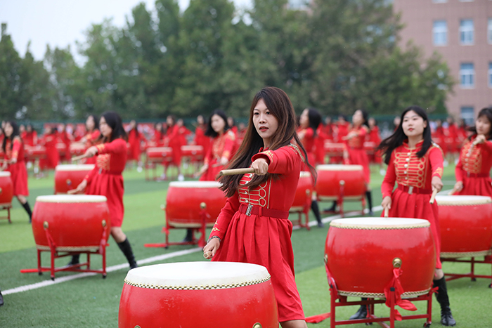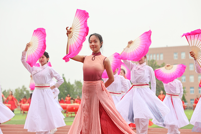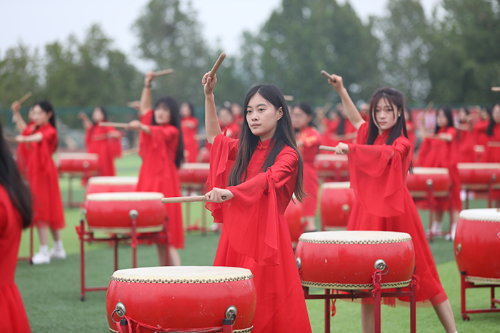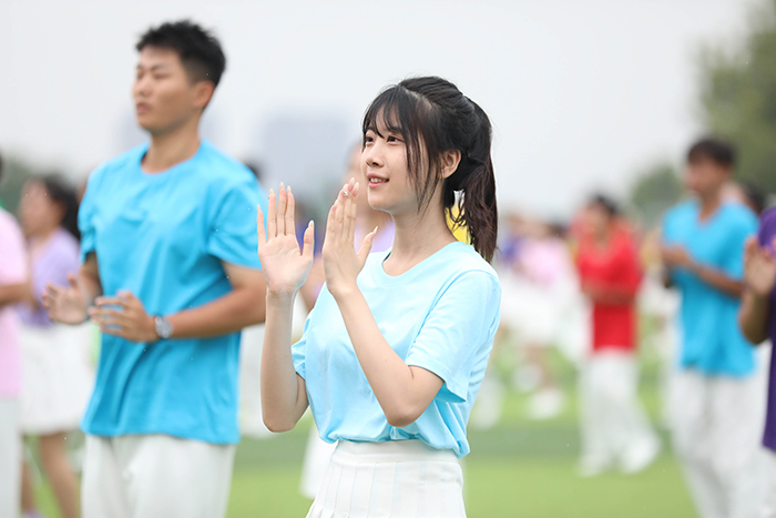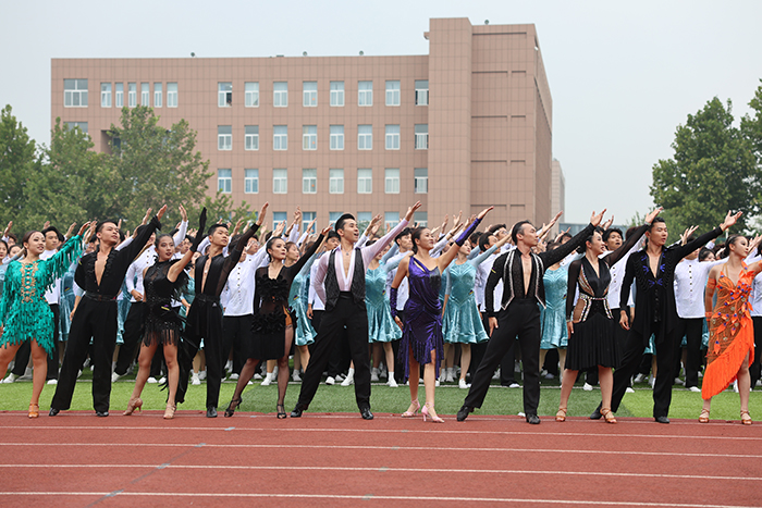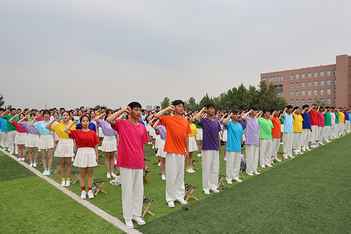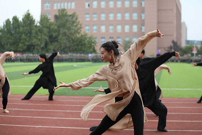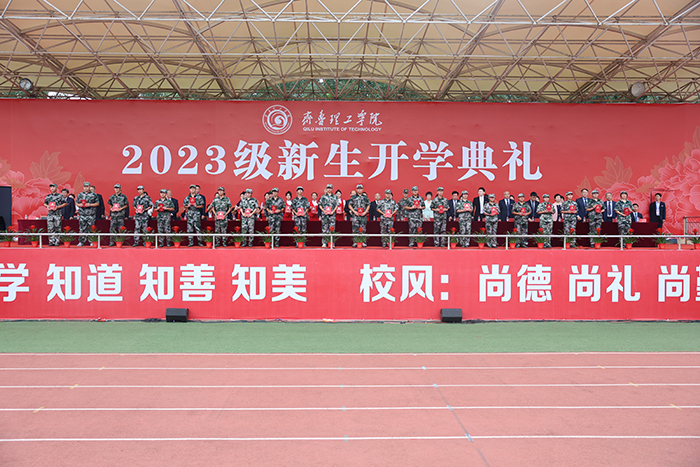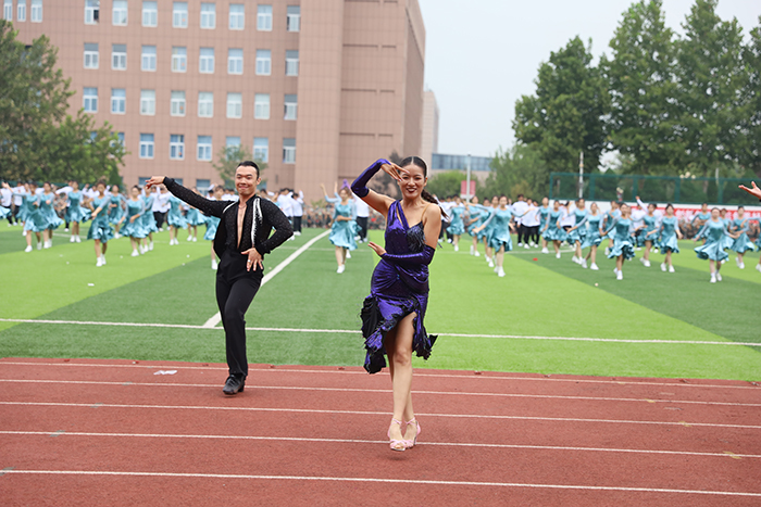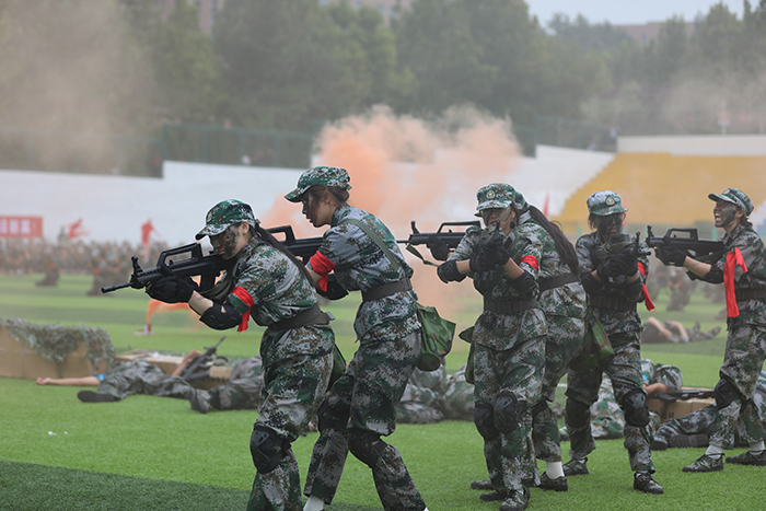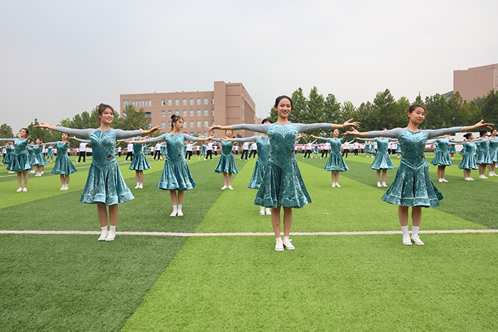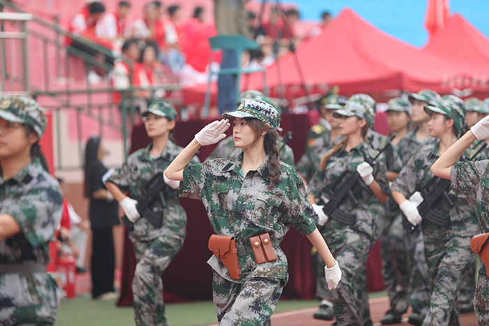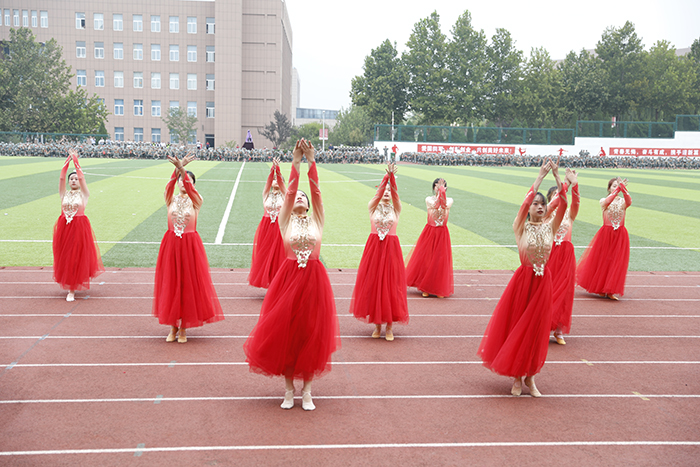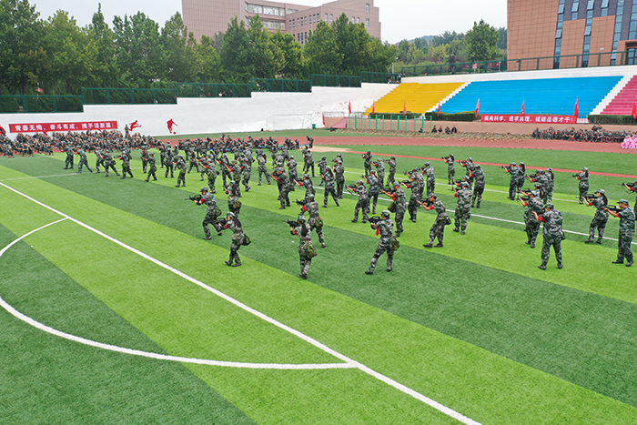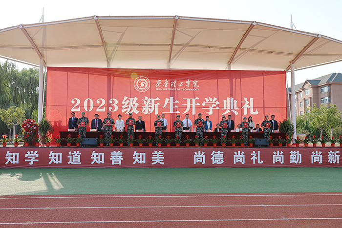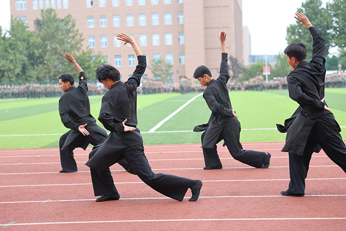2023级新生进行了精彩的汇报表演。红鼓舞、手语操、军事技能表演、拉丁舞、校园舞、啦啦操、经典诵读等逐一上演,精彩纷呈,新生们以过硬的身体素质和良好的精神状态展示了齐鲁理工学子的青春风采。