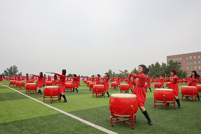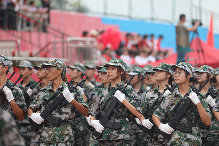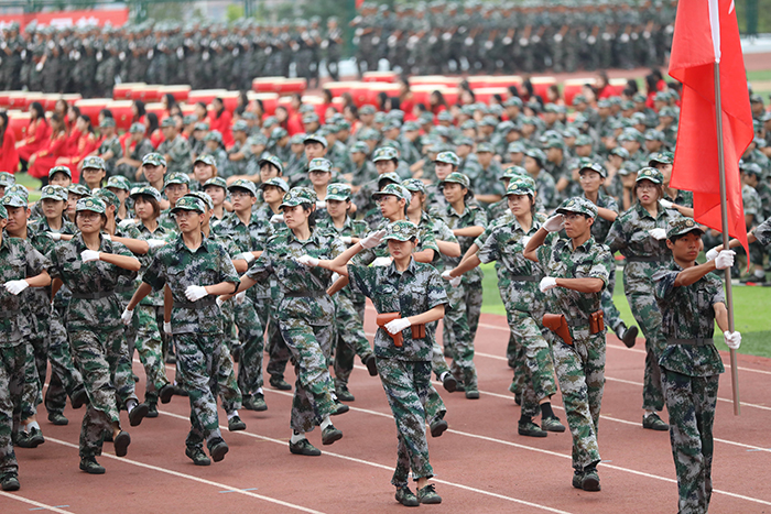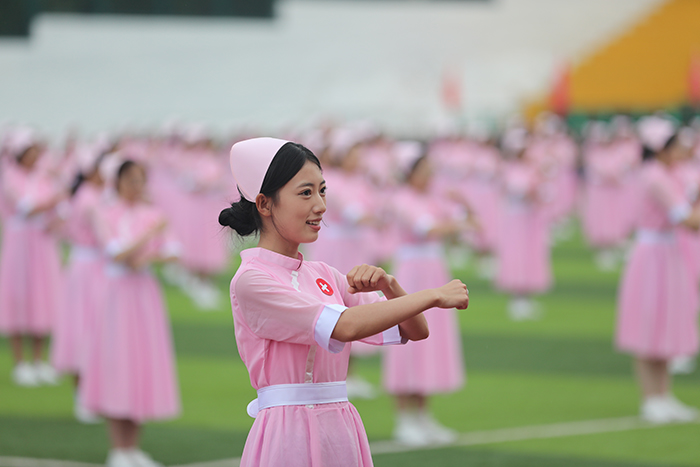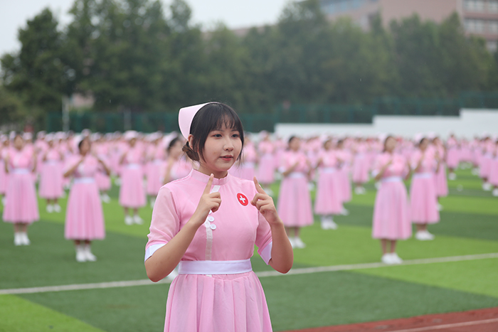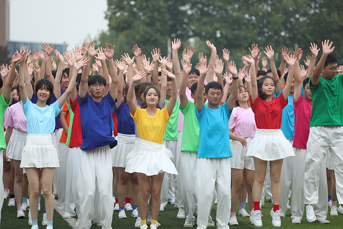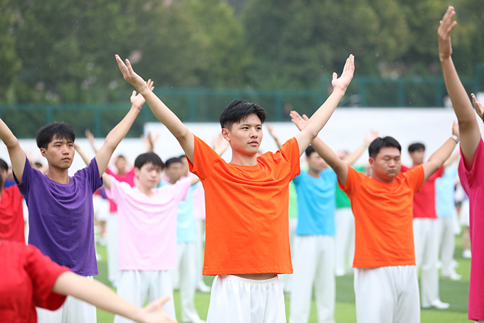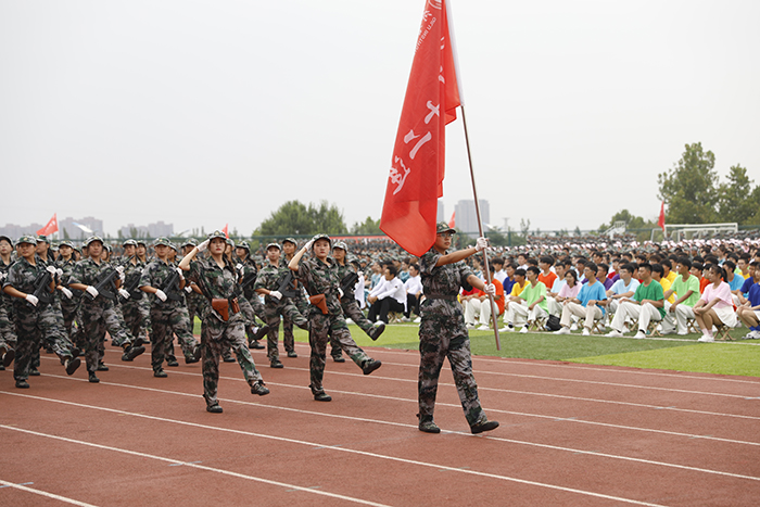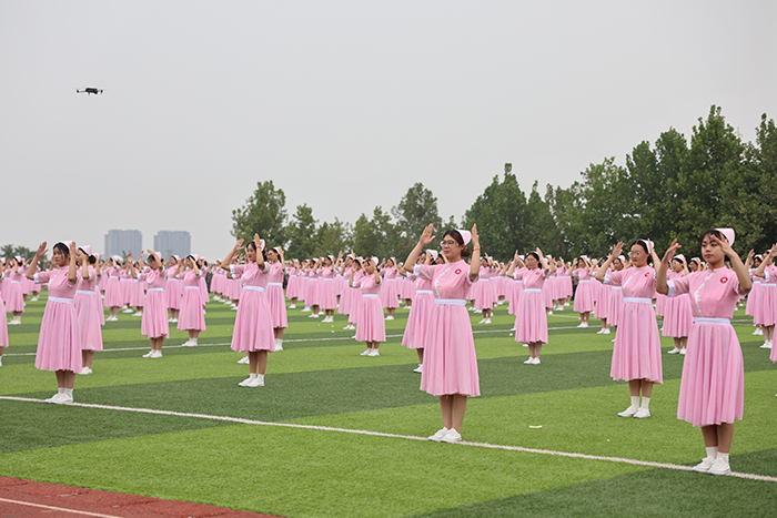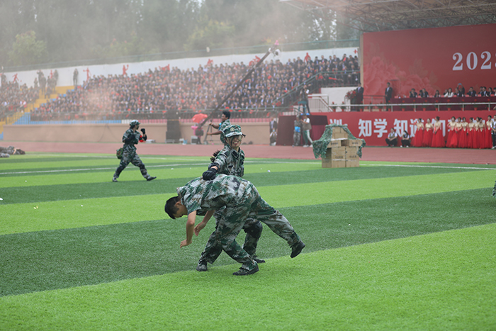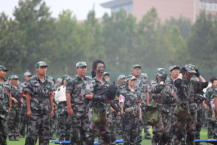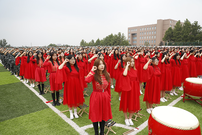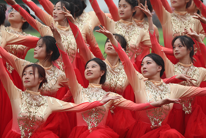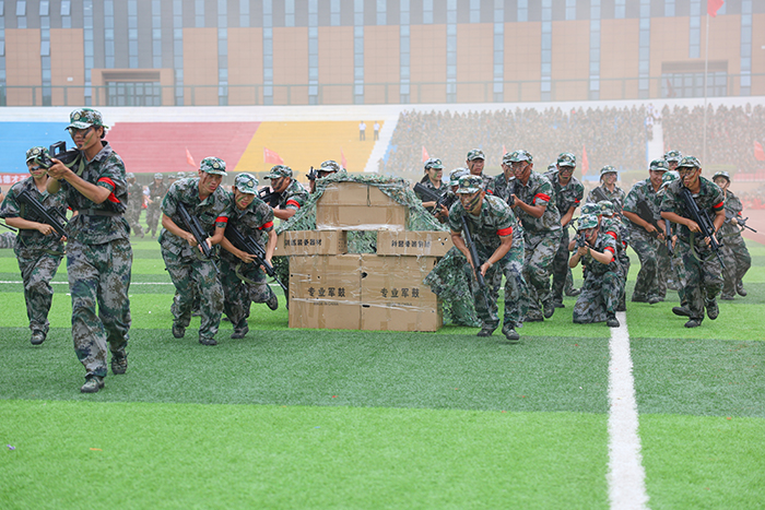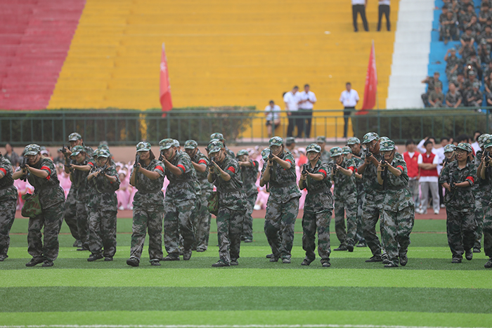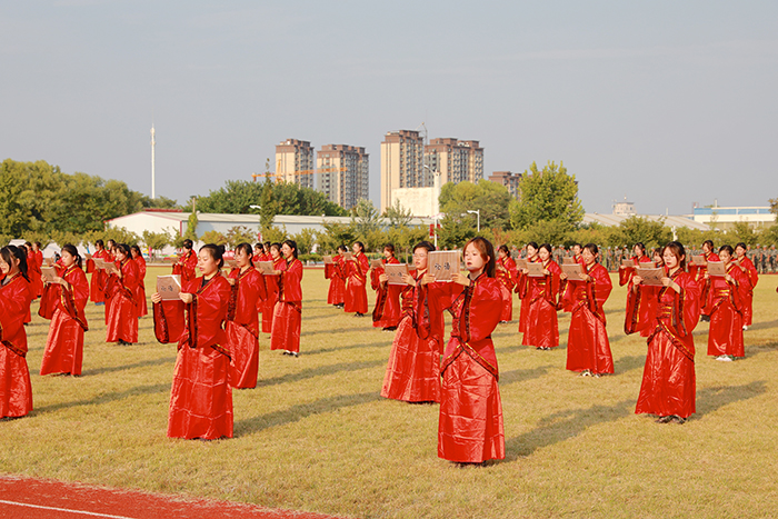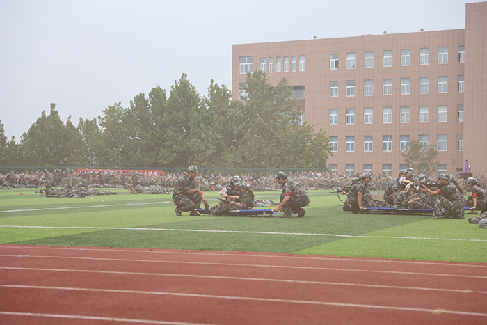 2023级新生进行了精彩的汇报表演。红鼓舞、手语操、军事技能表演、拉丁舞、校园舞、啦啦操、经典诵读等逐一上演,精彩纷呈,新生们以过硬的身体素质和良好的精神状态展示了齐鲁理工学子的青春风采。