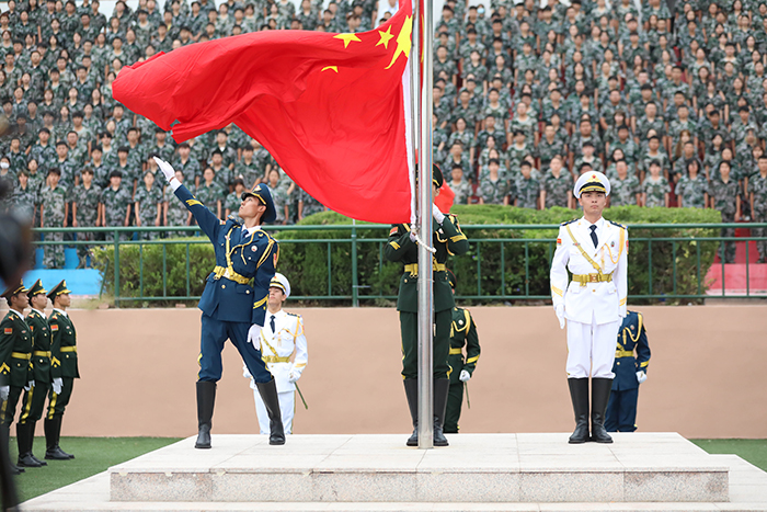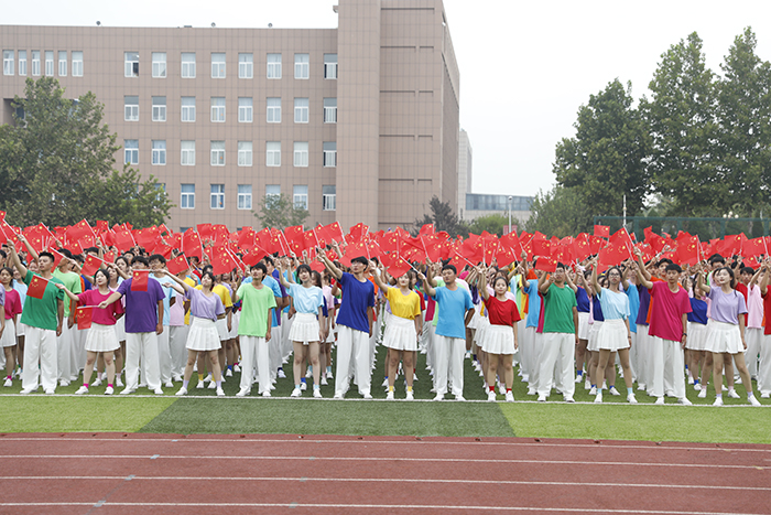 典礼最后,全场起立,万名师生挥舞手中的国旗,共同唱响《我和我的祖国》,表达对伟大祖国繁荣昌盛的美好祝愿,为2023级开学典礼画上圆满句号。