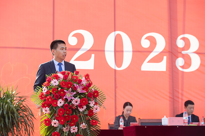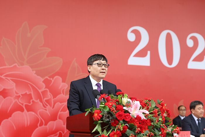 在热烈的掌声中,校长常翠鸣教授发表了热情洋溢的讲话,代表全校师生对2023级新生的到来表示欢迎,为2023级新生介绍了学校的发展情况。常校长对全体2023级新生提出几点希望,希望大家在复兴大业中树牢远大志向,做志存高远的新时代大学生;在齐鲁文化中涵养优秀品德,做道德高尚的新时代大学生;在学习实践中夯实专业基础,做真才实学的新时代大学生;在养成教育中塑造优良品行,做品学兼优的新时代大学生。