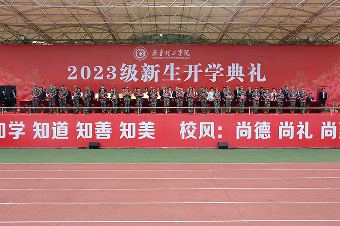 开学典礼上,学校对军政训练获奖单位和个人进行了表彰;同时表彰了2023年度优秀教学团队和优秀教师、“最美教师”、教学比赛获奖教师。
