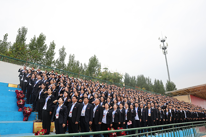 典礼伊始,升国旗,唱国歌,全体师生起立高歌,鲜艳的五星红旗,在国歌声中缓缓升起。