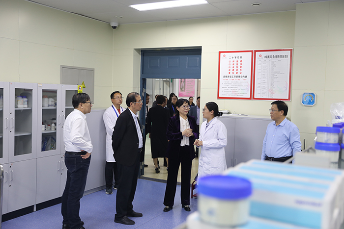 会后,韩金祥一行实地参观了我校全国党建工作样板支部——化学与生物工程学院党支部;生物医学诊疗材料山东省工程研究中心、生物医学诊疗材料特色实验室、中德智慧工厂应用山东省工程研究中心、工业物联网国际合作联合实验室等省级创新平台和实验室。考察了口腔医学实验教学中心口腔数字化仿真头模系统实验室、口腔临床模拟实验室、口腔压缩机房、模型制作室等,对中心各实验室的建设,特别是围绕“口腔医学基础知识→口腔临床能力→口腔创新能力”三个层次培养的需求,构建完善的5模块实验教学平台给予了高度评价和认可。