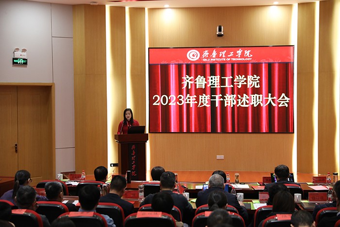 述职亮“答卷”,聚力启新程。1月17日,学校2023年度干部述职大会在济南校区举行,校长常翠鸣、党委书记徐淑凤,各位分管校领导出席大会,全校处级以上干部参加大会。大会由副校长单成娟主持。