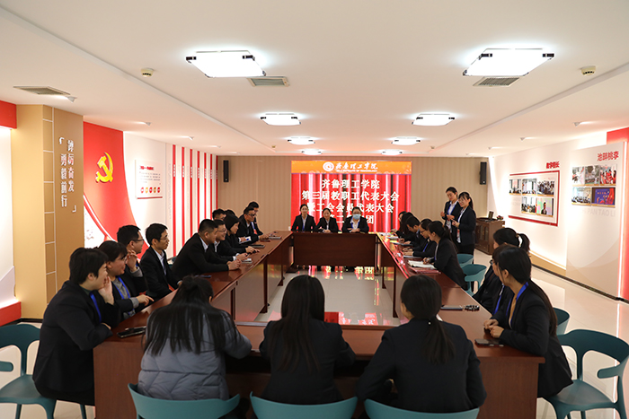 新当选的工会主席赵庆勇致辞,表示将和全体委员认真履行各项权利和义务,不断加强工会自身建设、维护教职工权益、关心教职工生活、以身作则干好工作,努力打造有活力的工会组织,努力把工会办成教职工温馨之家。