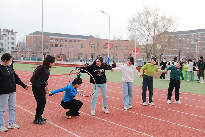 阳春三月,草长莺飞。为庆祝第114个“三八”国际劳动妇女节的到来,3月6日下午,学校组织策划了庆祝“三八”国际妇女节趣味运动会。副校长、工会主席赵庆勇,纪委书记、副校长胡洋,学校工会委员会委员以及女教职工代表参加活动。