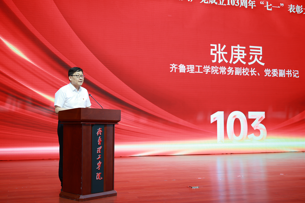 6月19日,学校庆祝中国共产党成立 103 周年“七一”表彰大会暨“不忘初心颂党恩 扬帆逐梦迎七一”文艺汇演在济南校区隆重举行。党委书记徐淑凤等党委委员出席大会。大会由常务副校长、党委副书记张庚灵主持。