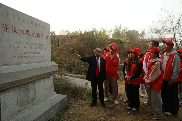 此次考察活动历时三天,考察团从曲阜“鲁国故城遗址·齐门”出发,沿途走访了曲阜鲁国故城遗址、孔子周游列国雕塑、鲁夹谷会盟遗址、青石关、鲁长城、管仲纪念馆、稷下学宫遗址与齐国故城考古现场等齐鲁文化遗址和标志性地标,实地调研了齐鲁文化脉络与齐鲁古道沿线地域文化,感受了那段波澜壮阔的历史岁月和蕴含的民族精神。