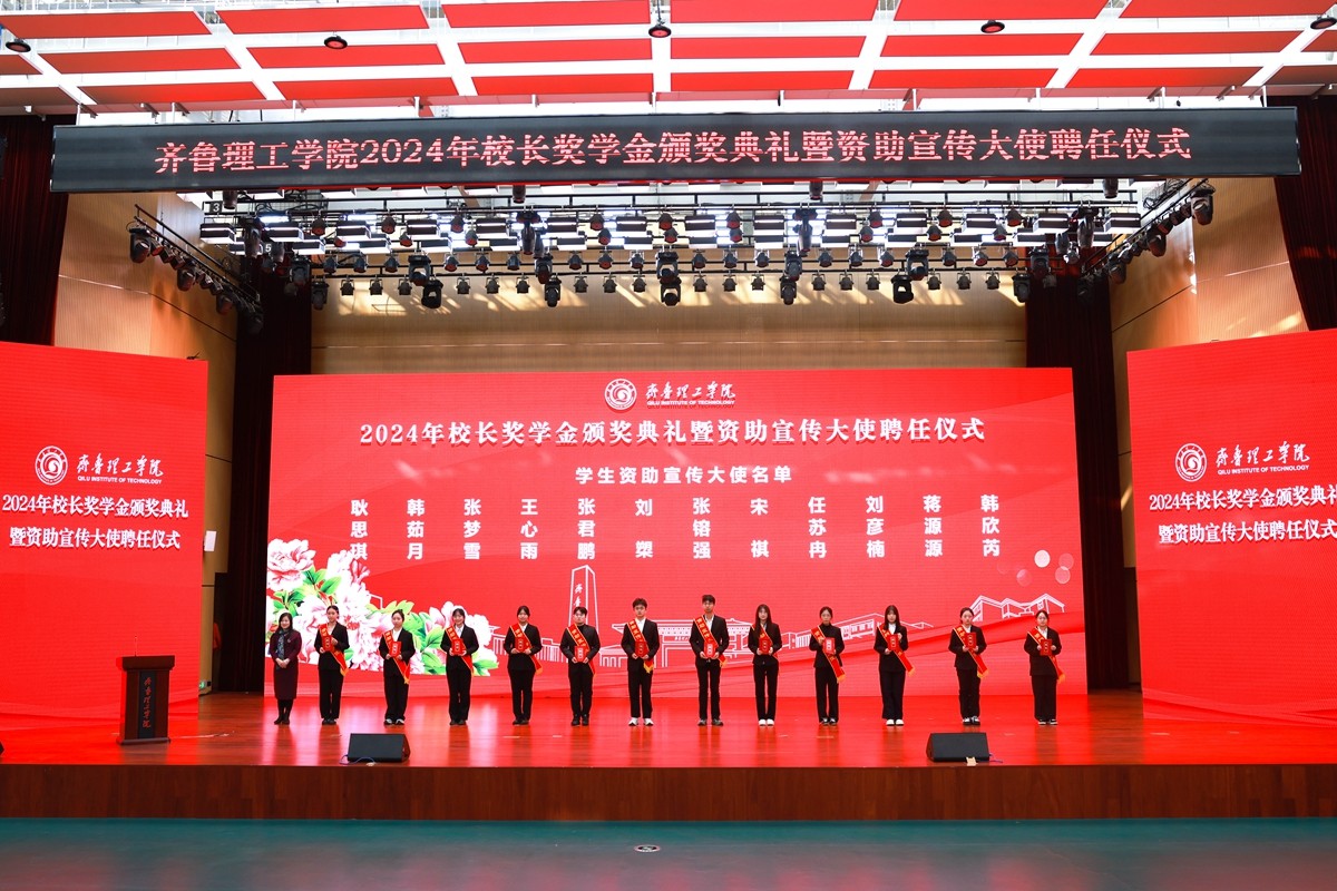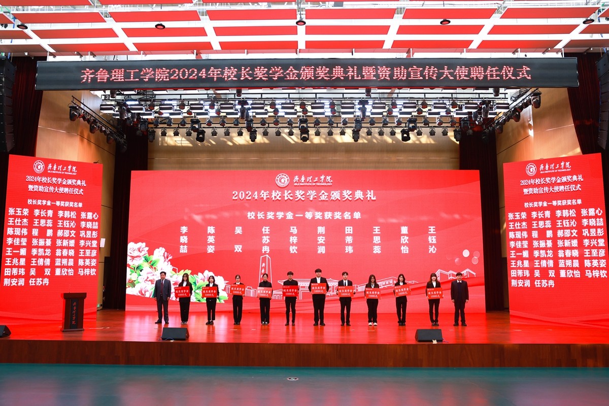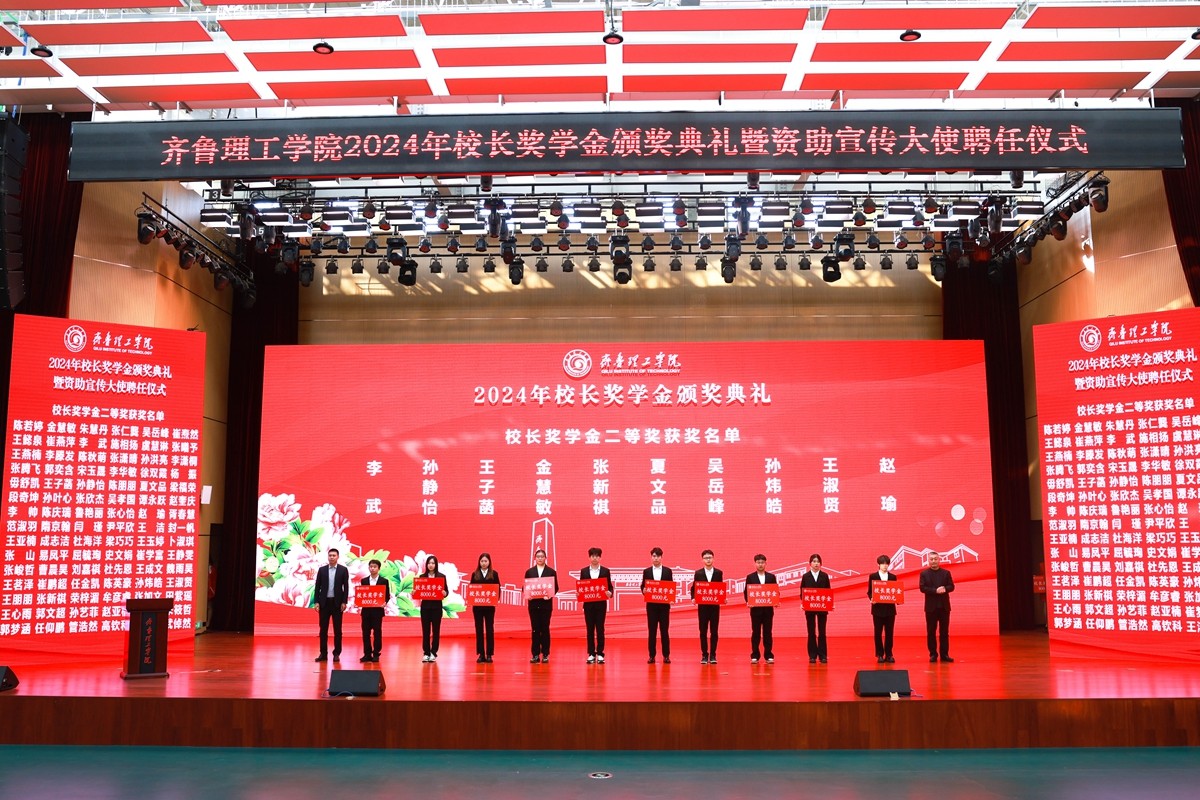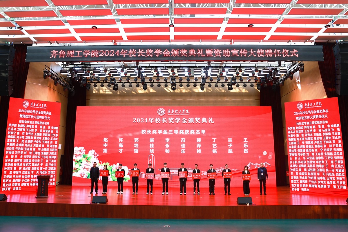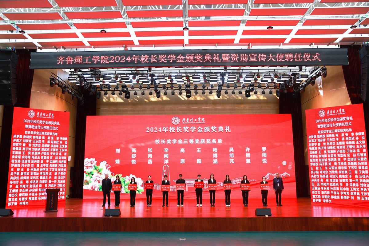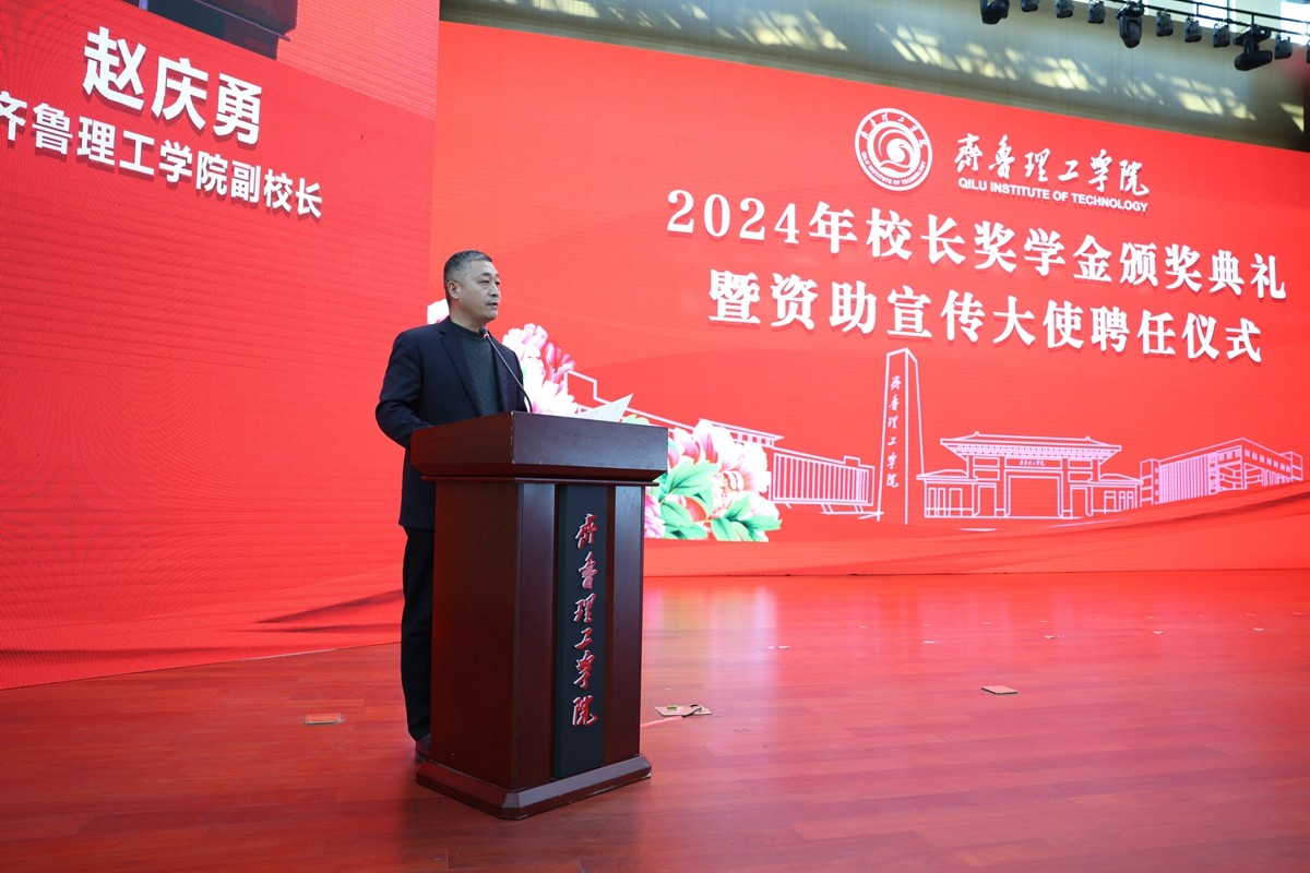 12月27日,学校2024年校长奖学金颁奖典礼暨资助宣传大使聘任仪式在济南校区文体馆隆重举行。校领导,各教学单位、相关部门负责人,获奖学生和学生代表共同参会。典礼由副校长胡洋主持。
