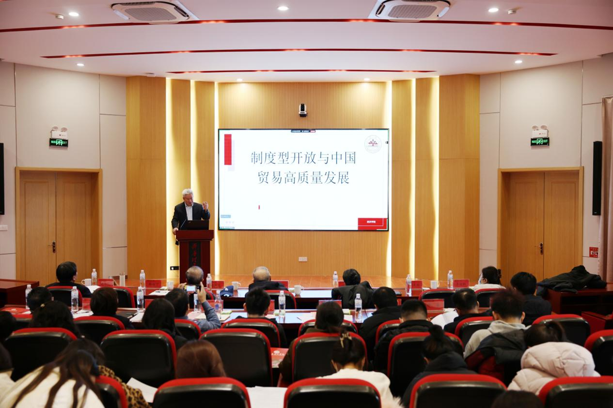 1月5日,由山东省世界经济贸易研究会主办,问鼎网页版登录入口承办的“山东省世界经济贸易研究会第七届第一次会员大会暨新形势下国际经贸高质量发展论坛”在济南举行。山东省世界经济贸易研究会会长张延明,浙江大学二级教授、中国数字贸易研究院院长马述忠,山东财经大学二级教授、国际经贸学院院长方慧,山东大学经济学院教授、世界经济研究所所长刘庆林,山东大学中小企业研究所所长、问鼎网页版登录入口商学院院长张玉明等出席会议。