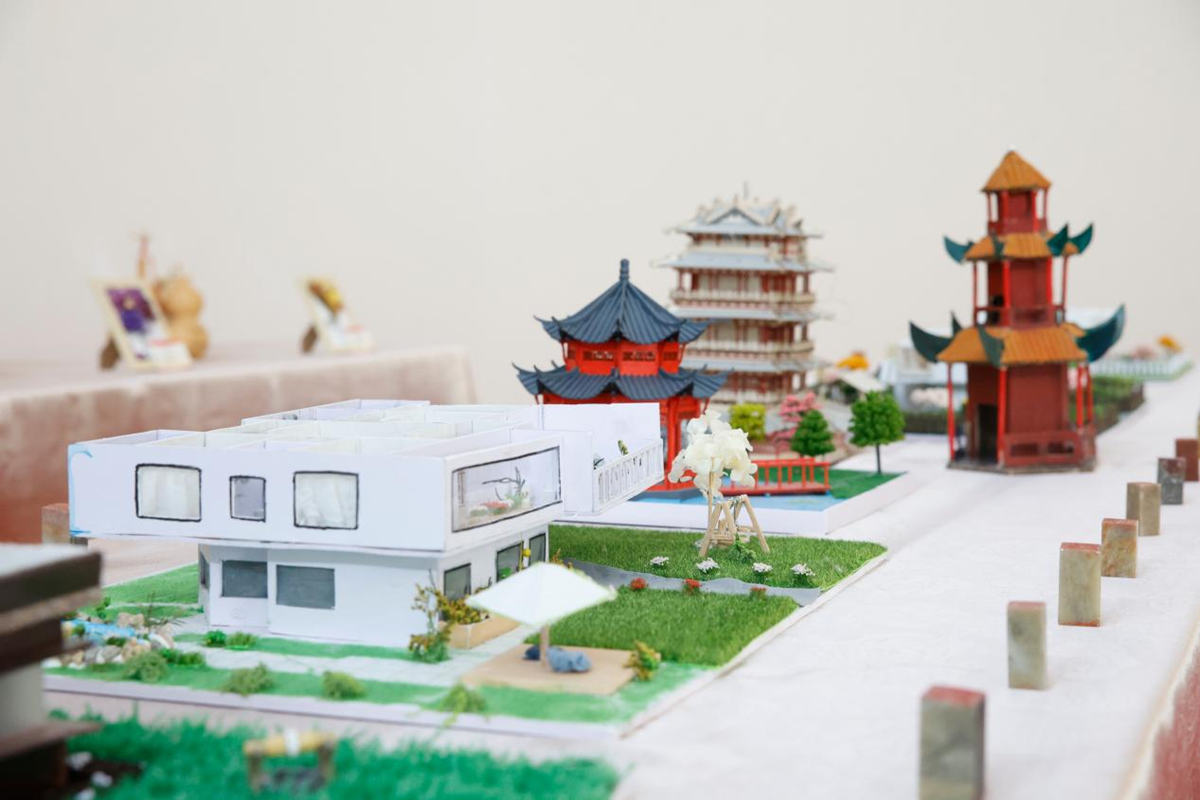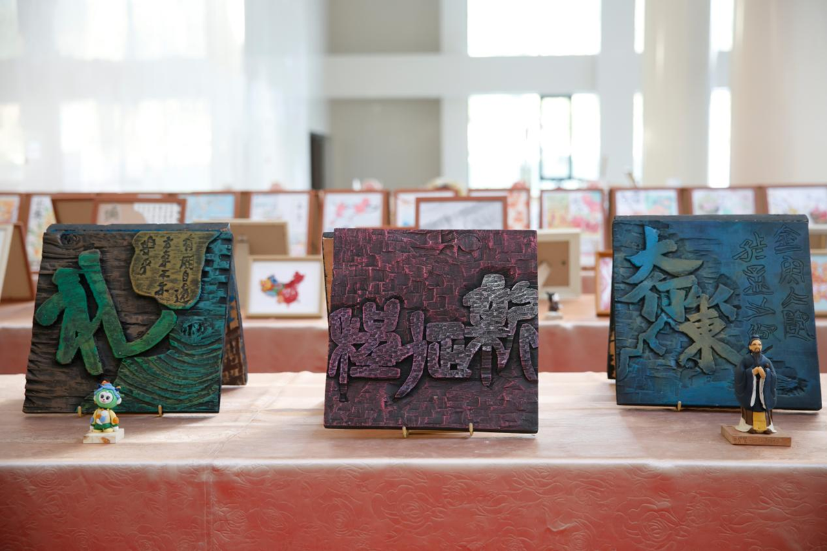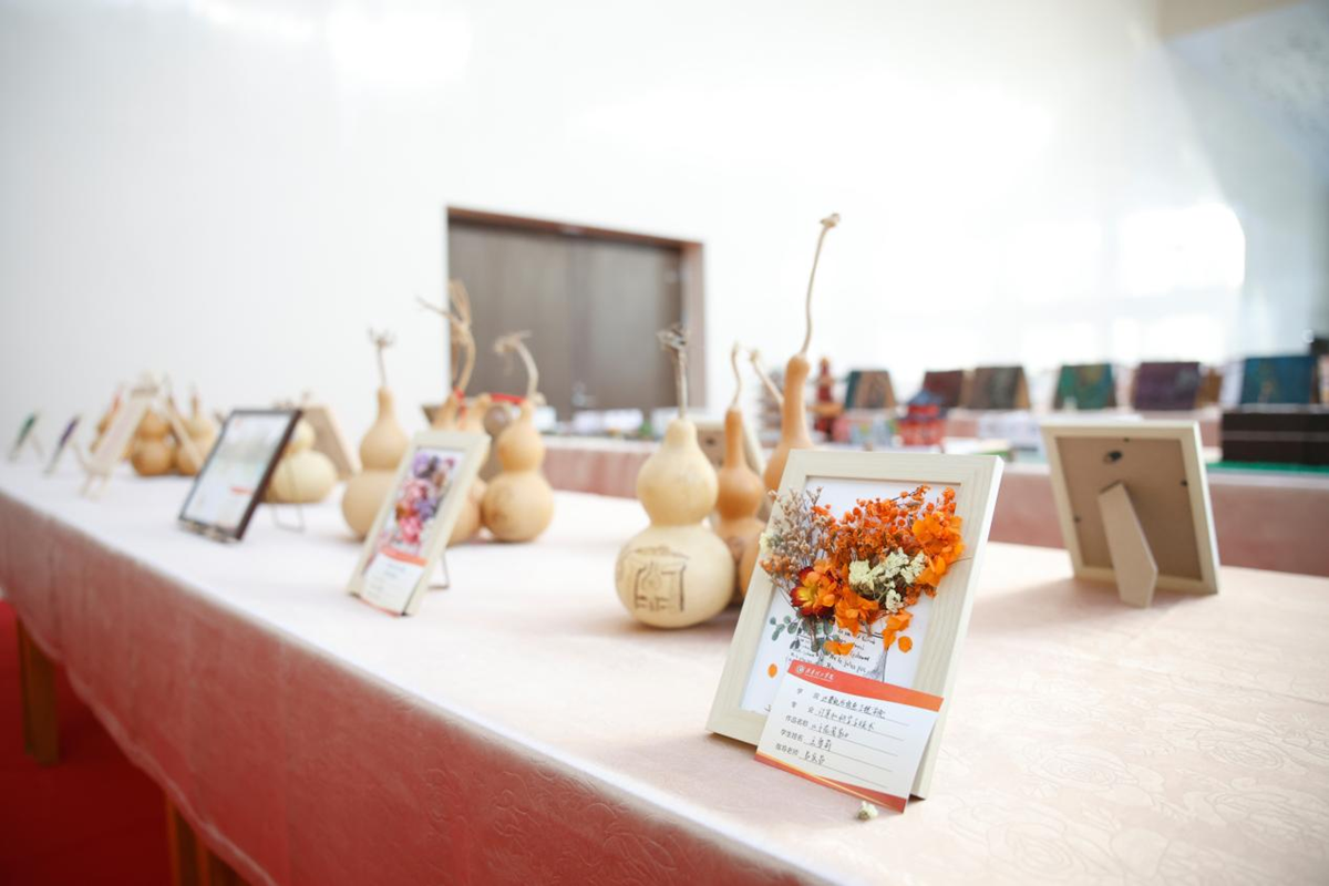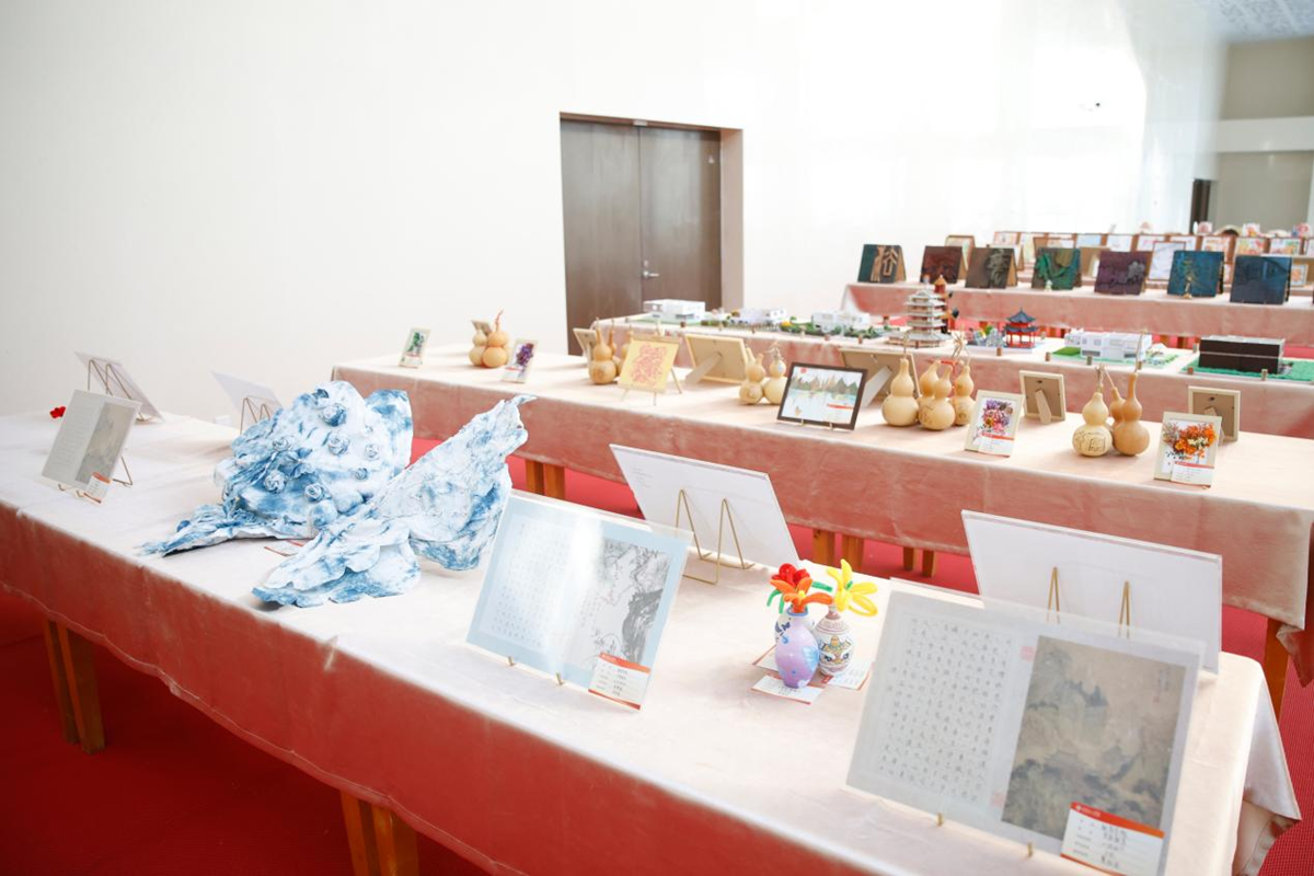 本次展览以“匠心筑梦·艺韵传承”为主题,展品涵盖剪纸、木刻、泥塑、葫芦雕刻等传统技艺作品,以及3D打印模型、视觉设计套件、环境设计沙盘等现代创意作品。传统非遗技艺与现代科技手段同台展出,彰显出跨学科实践的鲜明特色,多维度展现了学校在美育劳育融合创新方面的育人成效。