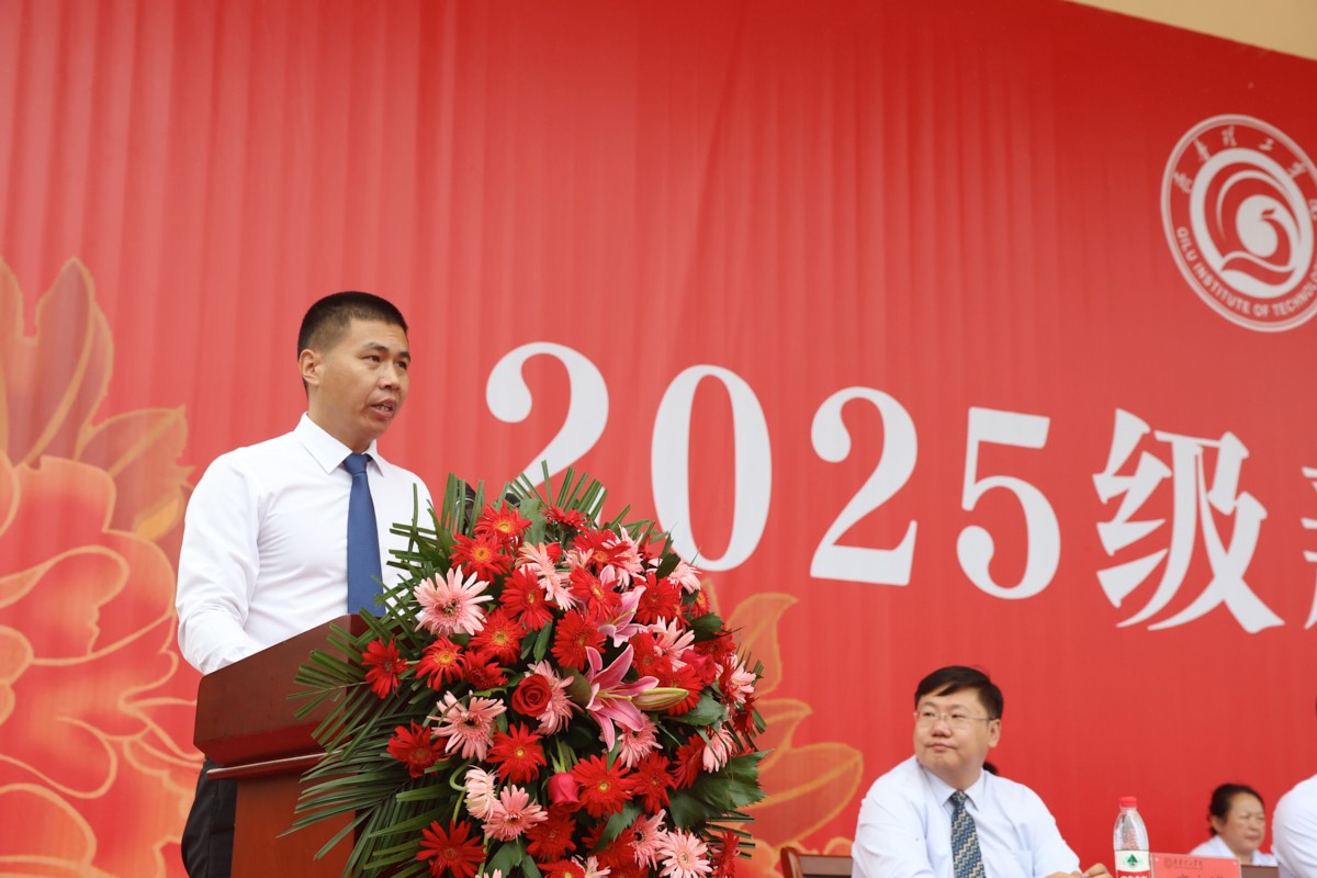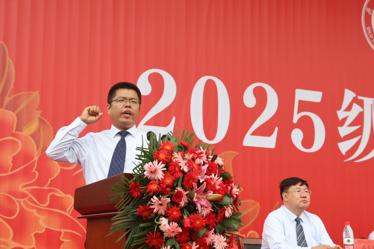 典礼在鲜艳的五星红旗下,举行了教师、学生宣誓仪式。全体教师在宣誓中表示,忠诚党的教育事业,弘扬教育家精神,牢记为党育人、为国育才的初心使命,为强国建设、民族复兴努力奋斗。2025级新生在宣誓中,表达了“请党放心,强国有我”的决心和信心。