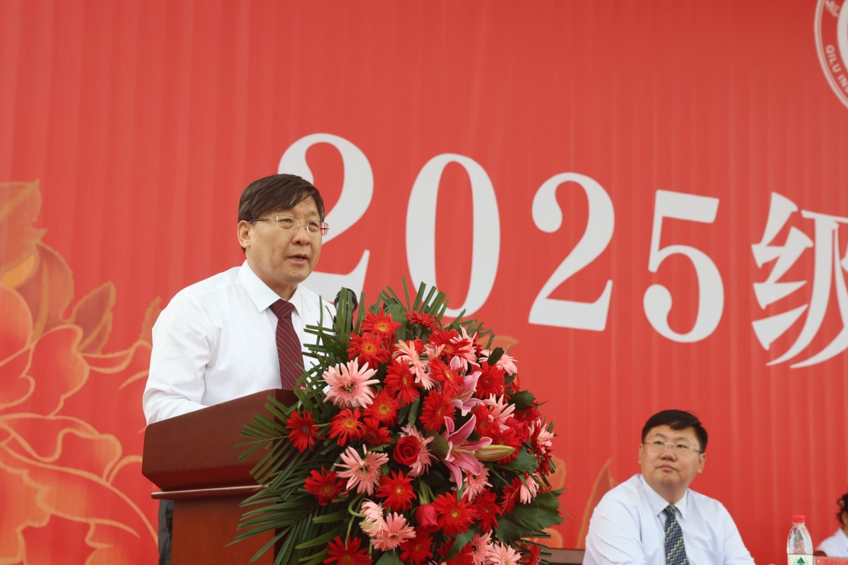 在热烈的掌声中,校长常翠鸣教授发表了热情洋溢、振奋人心的讲话。她代表全校师生员工向来自全国各地的2025级新生表示热烈欢迎,介绍了近年来学校改革发展取得的成绩,讲授了开学第一课。她希望同学们坚定理想信念、勤于学习实践、根植深厚文化,努力成为堪当民族复兴重任、知行合一求真务实、品德高尚素质优良的时代新人。勉励同学们,牢记习近平总书记嘱托,坚定不移听党话、跟党走,怀爱国之心、立报国之志、增强国之能,把个人奋斗同国家前途命运紧紧联系在一起,尽快实现角色转变,融入大学新生活,德智体美劳全面发展,在推进中国式现代化的宽广舞台上绽放绚丽的青春光彩。